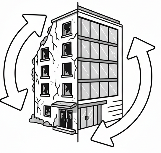 Modern transformation of existing spaces while preserving structure, value, and character.